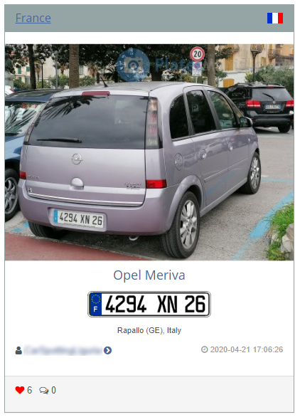 - Photo de la plaque d'immatriculation (généré automatiquement, ce n'est pas un crop de la plaque de la photo)