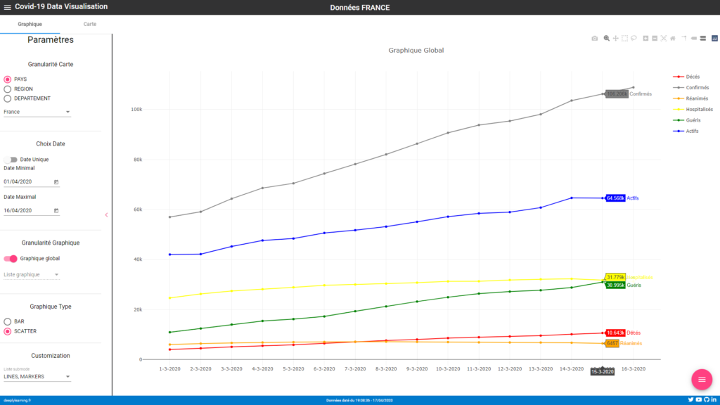 Exemple d'un graphique, venant de mon projet Covid19-Vizualisation