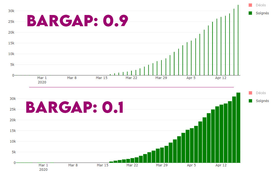 Vous pouvez gérer l'espacement entre les bars pour optimiser la lisibilité de votre graphique. Vous avez deux arguments pour cela :