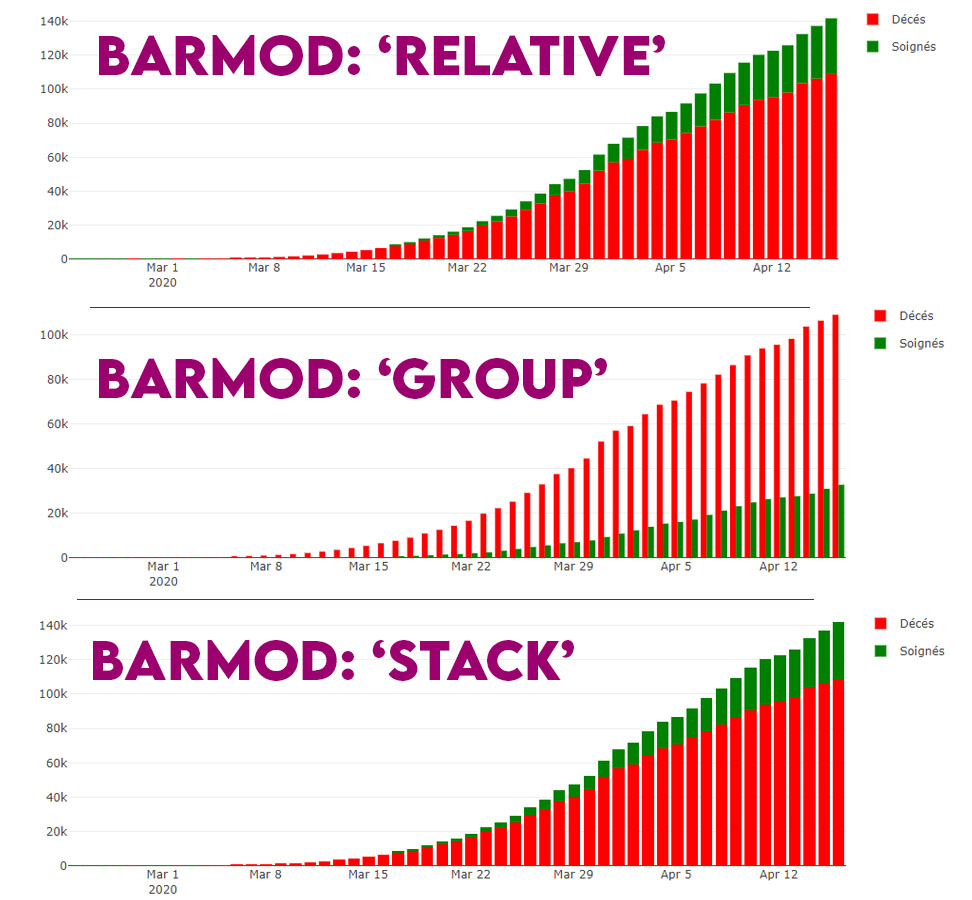 L'attribut 'barmod' se définit dans l'objet LAYOUT de notre graphique ( attribut 'layout' dans nos exemples précédents )