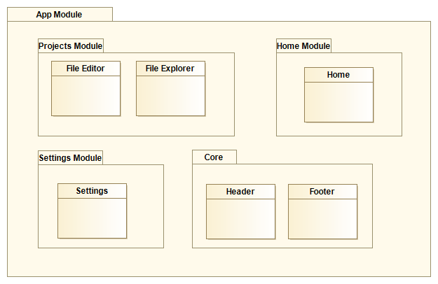 Depuis le dernier chapitre, j'ai légèrement modifié l'architecture du projet afin de le rendre plus maintenable pour la suite des tutoriels. En voici une présentation simplifié :