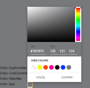 On ajoute juste une condition, dans le cas ou l'utilisateur choisit le thème 'Custom', on affiche un sélecteur de couleur pour chaque item modifiable de notre application. Pensez d'ailleurs à installer ce module que j'apprécie fortement, un color picker simple qui permet de choisir une couleur en héxadecimal, en RGB ou via un arc-en-ciel de couleur, et qui propose une multitude de fonctionnalités via son api, installable via :