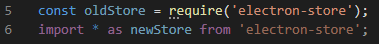 La ligne 5 représente un import de module pour les fichiers JS, la ligne 6 la méthode pour les fichiers TS