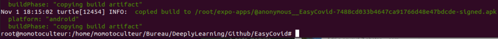 Voilà votre fichier APK, situé dans le répertoire annoncé dans la console.