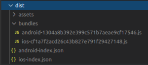 La seconde étape consiste à exporter notre application. Cela permet de créer les bundles (iOS & Android) à partir des fichiers javascript. Vous devriez apercevoir la création d'un dossier "dist" dans votre répertoire courant via la commande suivante :
